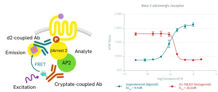 图四. HTRF β-arrestin 2 Recruitment试剂盒检测原理和验证数据