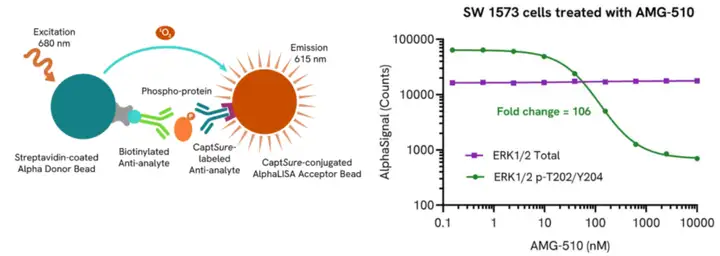 图三. AlphaLisa PHOSPHO-ERK1/2 (THR202/TYR 204) 试剂盒检测原理和验证数据