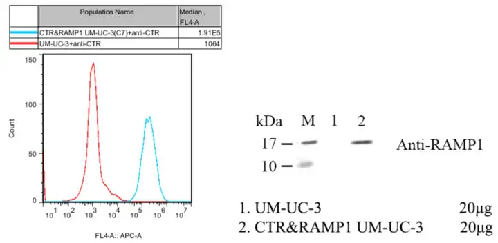 图1. CTR&RAMP1 UM-UC-3流式验证CTR表达(左)与WB(右)验证RAMP1表达结果