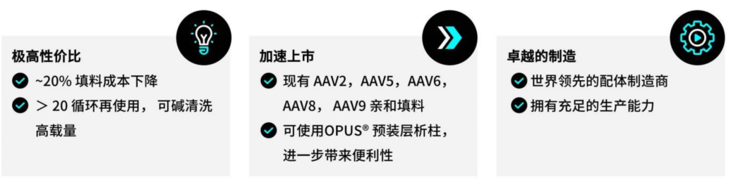AVIPure AAV填料,提供腺相关病毒(AAV)2,5,6,8和9载体的亲和捕获,可使用碱进行清洁再生,以提高工艺经济性。