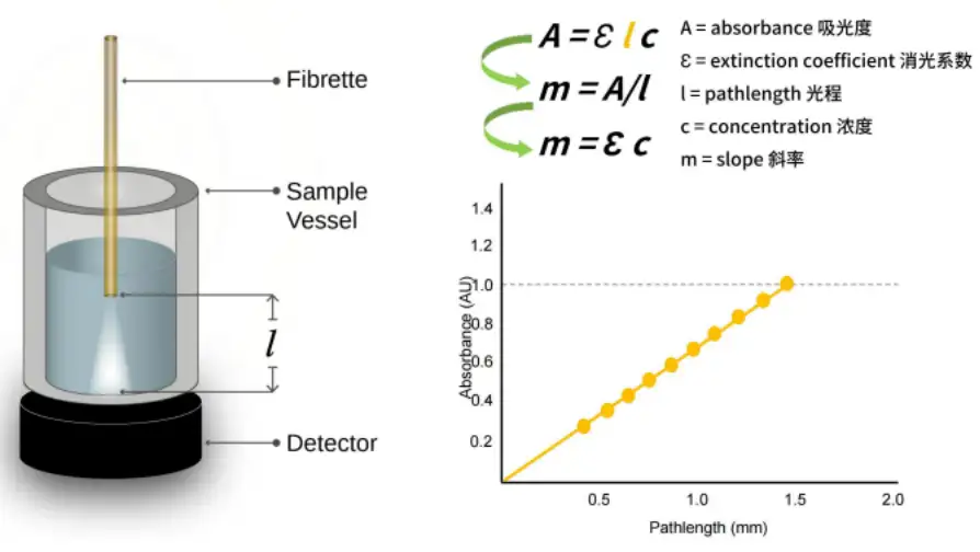 相对传统UV-Vis 光谱法需要多步稀释、背景校正来测量单个吸光度点,可变光程UV-Vis提供了更便捷、高重复性和准确性的测试方法,减少潜在的数据误差。