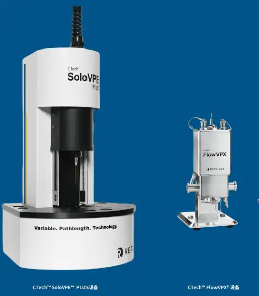 Repligen的CTechTM可变光程紫外分光光度计系统:包括soloVPETM PLUS和FlowVPX®。基于创新的可变光程-斜率光谱法,为您提供从研发到生产的全流程浓度分析解决方案,彻底颠覆您的检测体验!