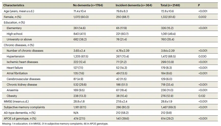表2. 全因痴呆与阿尔茨海默病痴呆的发病率及风险比