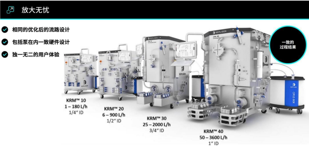 KRM™ 层析系统融合了数十年的革命性技术创新,形成了一种设计并可稳定工艺放大的平台,用于前所未有的复杂生物分子和新型疗法的回收。