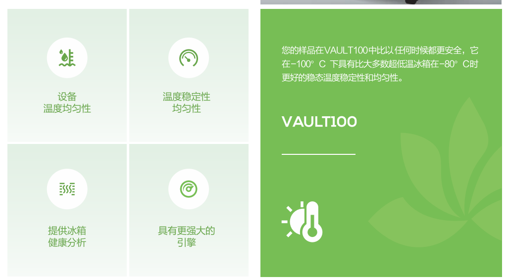 我们设计了VAULTIOO,考虑到您日常设施中的挑战,使其能够快速恢复温度。其增强的引擎、电子设备和柜体/内门设计确保其能够快速恢复到设定温度。当在低至-100℃的设定点下运行时,您的样品在典型的开门过程中可能永远不会暴露在高于-70℃至-80℃范围的温度下.